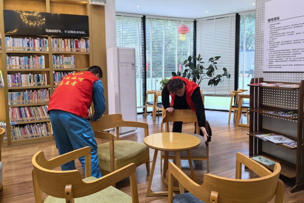浙江寧波海螺志愿者正在對當(dāng)?shù)貢莸裙苍O(shè)施進(jìn)行保潔。