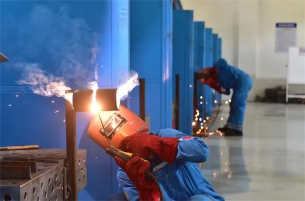 在焊工比賽現(xiàn)場,焊花飛舞、弧光閃耀,在“鋼鐵裁縫”的焊槍下,工件被嚴絲合縫地焊接成型。