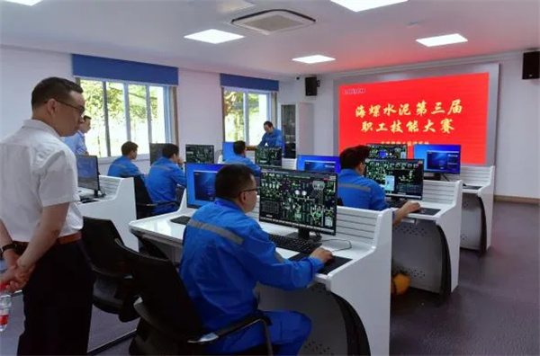 在水泥操作工比賽現(xiàn)場,選手們嚴謹?shù)夭僮髦M系統(tǒng),逐步把各項參數(shù)調至最優(yōu)值。