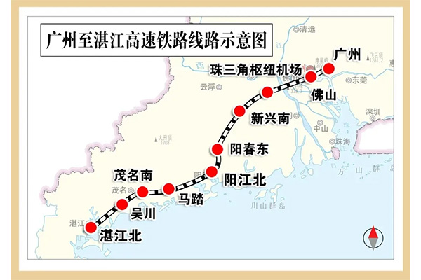 廣湛高鐵是國家“八縱八橫”高速鐵路網(wǎng)、時速350公里沿海鐵路客運大通道的重要組成部分。正線自廣州站引出,向西經(jīng)佛山、肇慶、云浮、陽江、茂名、湛江,終至湛江北站,新建雙線約401公里,項目于2019年9月開工建設(shè),計劃2025年底完工,海螺水泥下屬多家單位承擔著多個標段水泥供應任務(wù)。