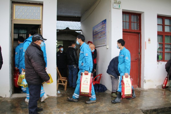 鳳凰山海螺暖心行動,組織志愿者們赴公司周邊村莊看望慰問老人,為他們送去米、油等生活物品。