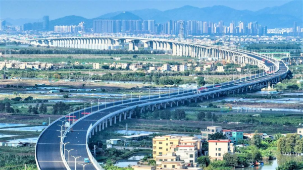 黃茅??绾Mǖ?/span>作為港珠澳大橋的西延,起于珠海市平沙鎮(zhèn),終于江門市斗山鎮(zhèn),全長(zhǎng)約31公里,采用雙向6車道高速公路標(biāo)準(zhǔn),跨海段長(zhǎng)度約14公里,全線設(shè)置高欄港大橋、黃茅海大橋2座主橋以及隧道2座、互通4座、服務(wù)區(qū)1處。黃茅??绾Mǖ赖耐ㄜ?,使得粵港澳大灣區(qū)“1小時(shí)生活圈”正逐步從發(fā)展愿景成為生活現(xiàn)實(shí)。