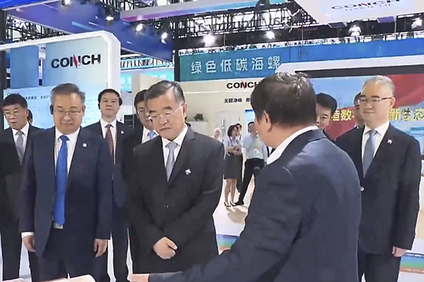 開(kāi)幕式后,全國(guó)人大常委會(huì)副委員長(zhǎng)張慶偉、省委書(shū)記梁言順、省長(zhǎng)王清憲一行巡館,查看了海螺集團(tuán)展館和海螺建筑光伏大道,聽(tīng)取了海螺加快產(chǎn)業(yè)轉(zhuǎn)型升級(jí),推動(dòng)企業(yè)高質(zhì)量發(fā)展的情況介紹。
