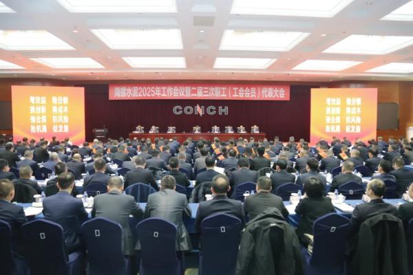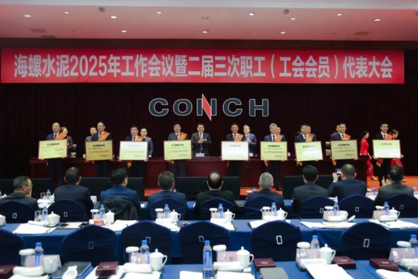 1月16日下午—1月17日上午,海螺水泥在總部大廈三樓海螺廳召開了2025年工作會(huì)議暨二屆三次職工(工會(huì)會(huì)員)代表大會(huì)。總結(jié)2024年工作,部署2025年經(jīng)營目標(biāo)任務(wù)。公司班子、各區(qū)域、子公司主要負(fù)責(zé)人、海螺環(huán)保班子成員、各部室負(fù)責(zé)人以及職工代表共300余人在蕪湖主會(huì)場(chǎng)參加了會(huì)議,各子公司其他班子成員及二級(jí)部門主要負(fù)責(zé)人以視頻連線方式參加了會(huì)議。會(huì)議分別由公司黨委副書記、工會(huì)主席劉田田和公司副總經(jīng)理吳鐵軍主持。