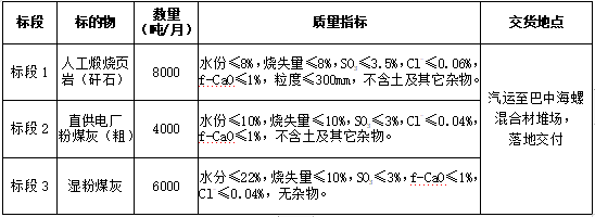 2.投標人需具有較強的保供能力,標段1月供貨能力不低于0.5萬噸,標段2不設(shè)置最低供貨量,標段3月供貨能力不低于0.3萬噸。同時,為維護直供關(guān)系,貿(mào)易渠道貨源不能為川煤華榮公司下轄嘉川電廠、代池壩電廠及南江煤電公司粉煤灰資源。