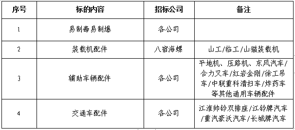 2.自采配件:裝載機配件、輔助車輛配件、交通車配件,考慮運輸距離及價格差異,八宿海螺需單獨報價。具體分類詳見招標(biāo)公司招標(biāo)清單。