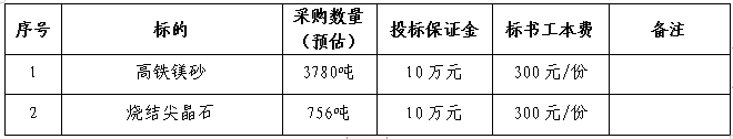 1.1招標名稱:安徽海螺暹羅耐火材料有限公司高鐵鎂砂和燒結尖晶石招標。