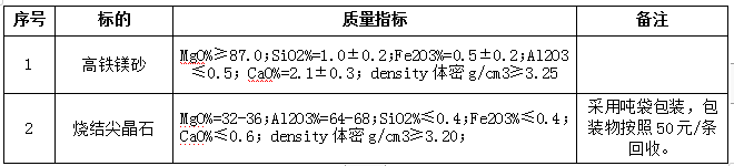 注:上述鎂質原材料必須為天然礦石制品,不得使用浮選等任何提純工藝生產的輕燒粉作為原材料。