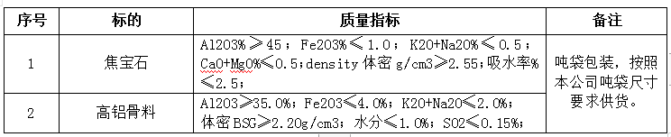 1.1招標(biāo)名稱:安徽海螺暹羅耐火材料有限公司2024年焦寶石和高鋁骨料招標(biāo)。